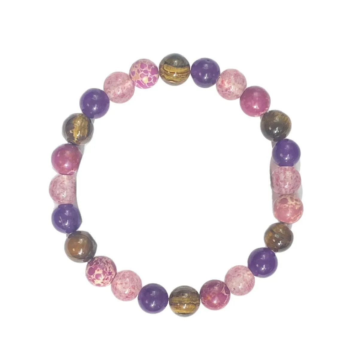 1 pc/Bohemian style calm mind bracelet made of tiger eye stone and rose quartz stretch bracelet unisex jewelry, ideal gift