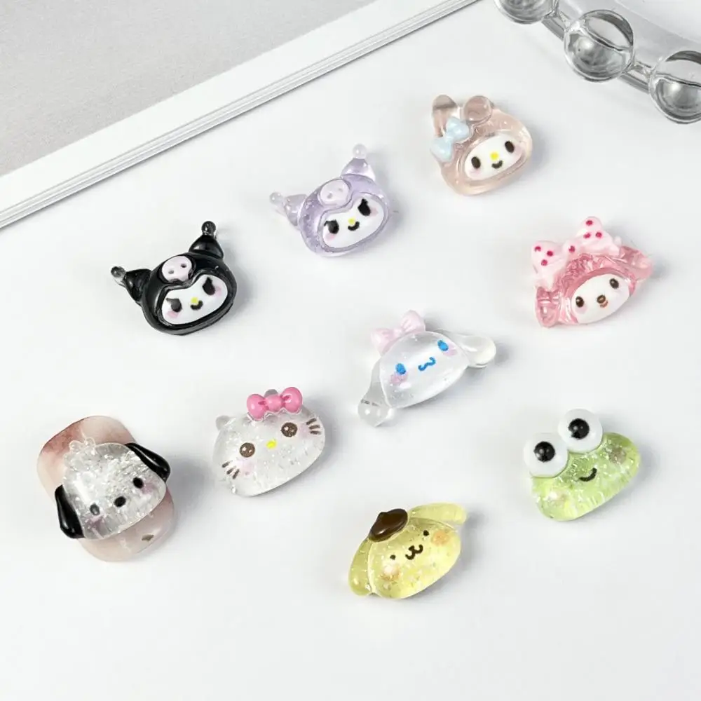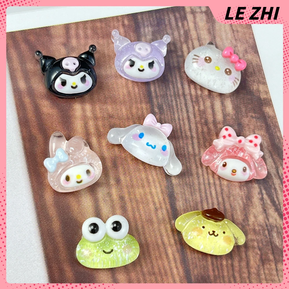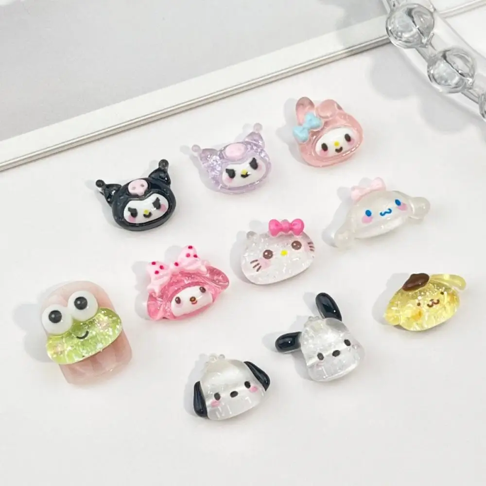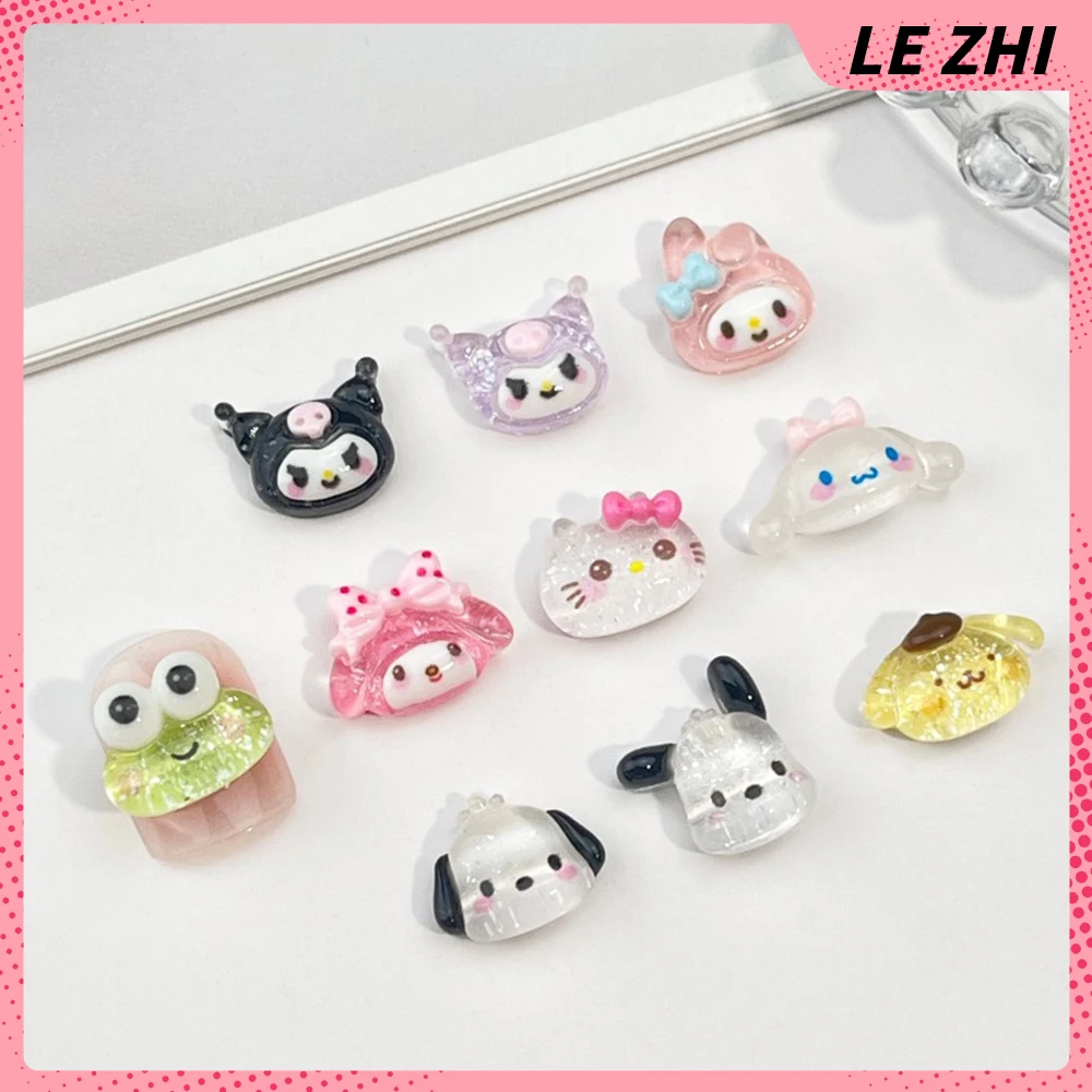 20Pcs Mixed Hello Kitty Glitter Powder Charm Nail Party Sticker Kuromi Resin Transparent Cinnamonroll Accessories Nail Art
