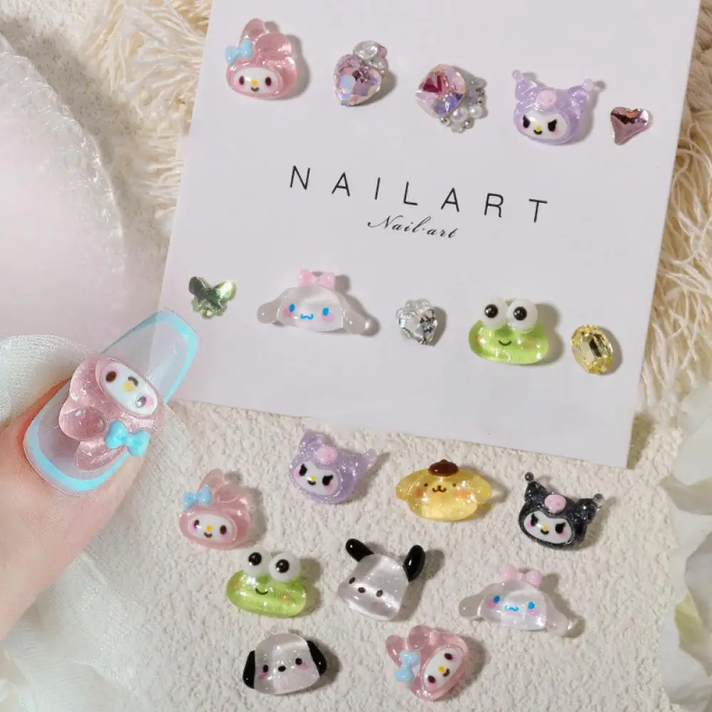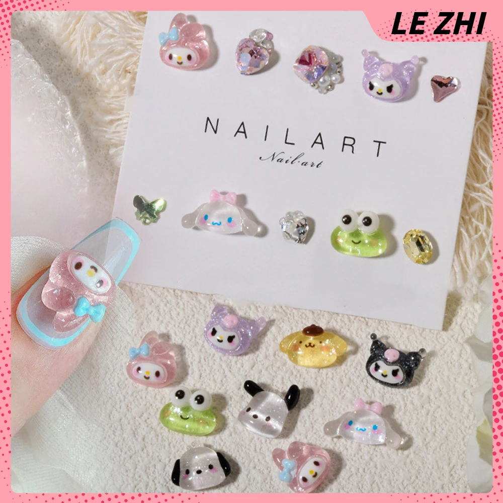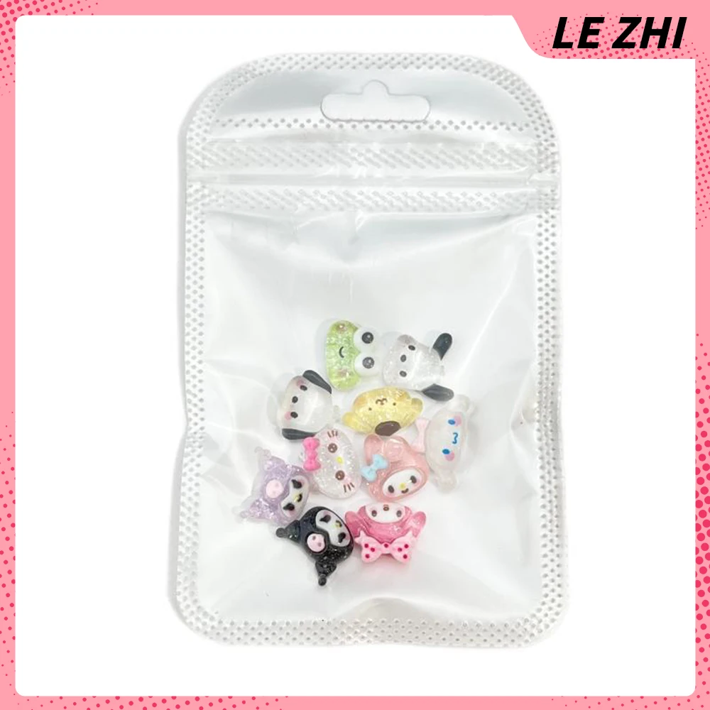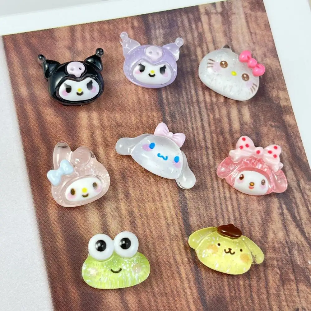 20Pcs Mixed Hello Kitty Glitter Powder Charm Nail Party Sticker Kuromi Resin Transparent Cinnamonroll Accessories Nail Art
