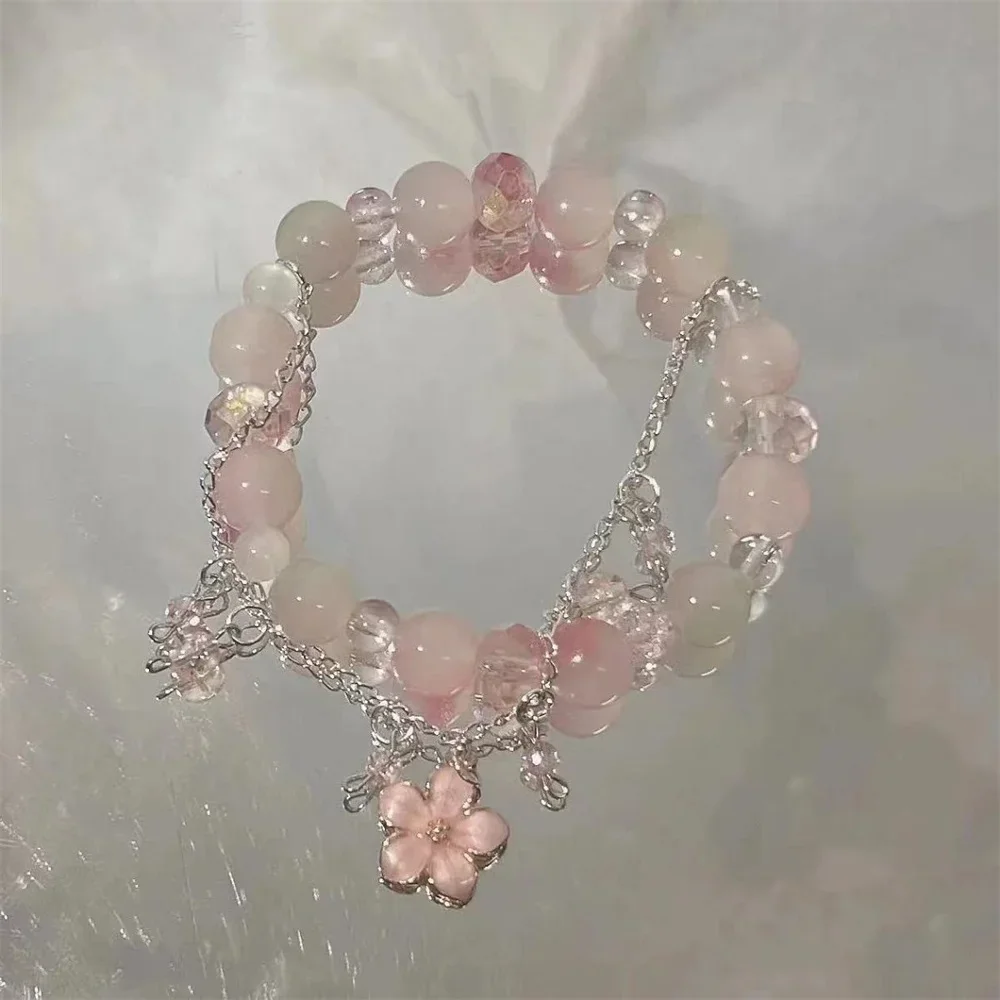 Exquisite Fashion Y2K Sweet Cherry Blossom Bracelet For Women Elegant Flower Crystal Beaded Bracelet Girl Party Jewelry Gift