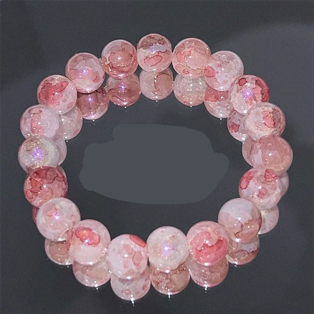 Women's Cracked Quartz Crystal Beaded Round Glass Beads Stretch Bracelet Bangle Bracelets Women Girl Charm Wrap Jewelry