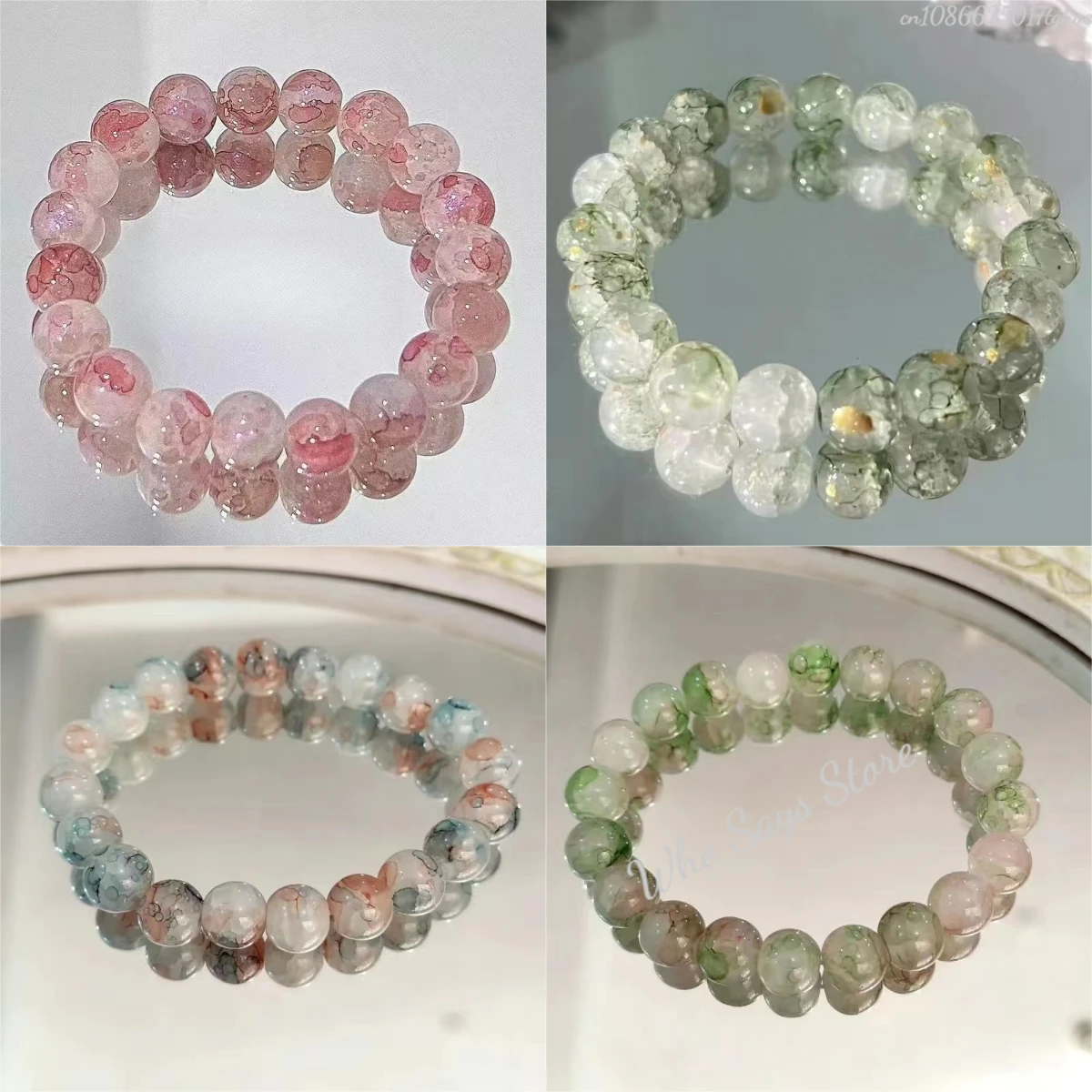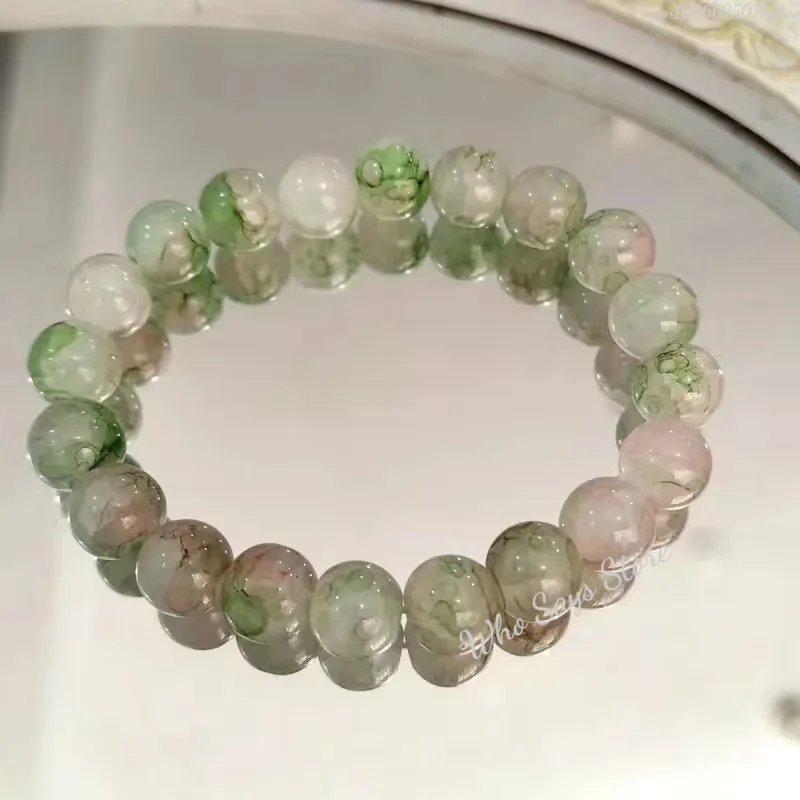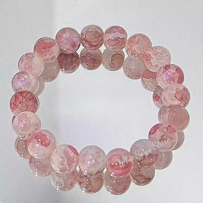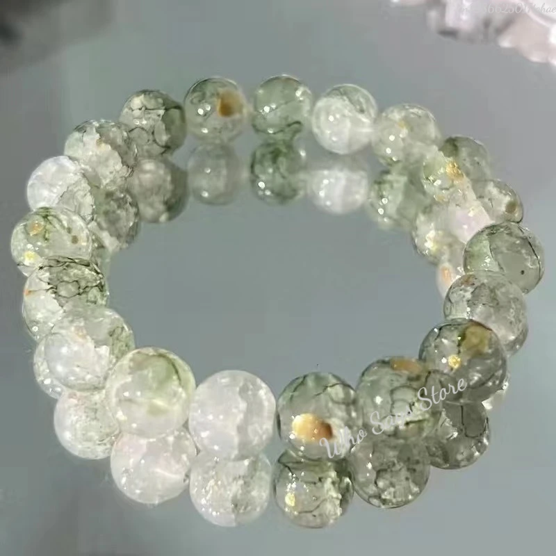 Women's Cracked Quartz Crystal Beaded Round Glass Beads Stretch Bracelet Bangle Bracelets Women Girl Charm Wrap Jewelry