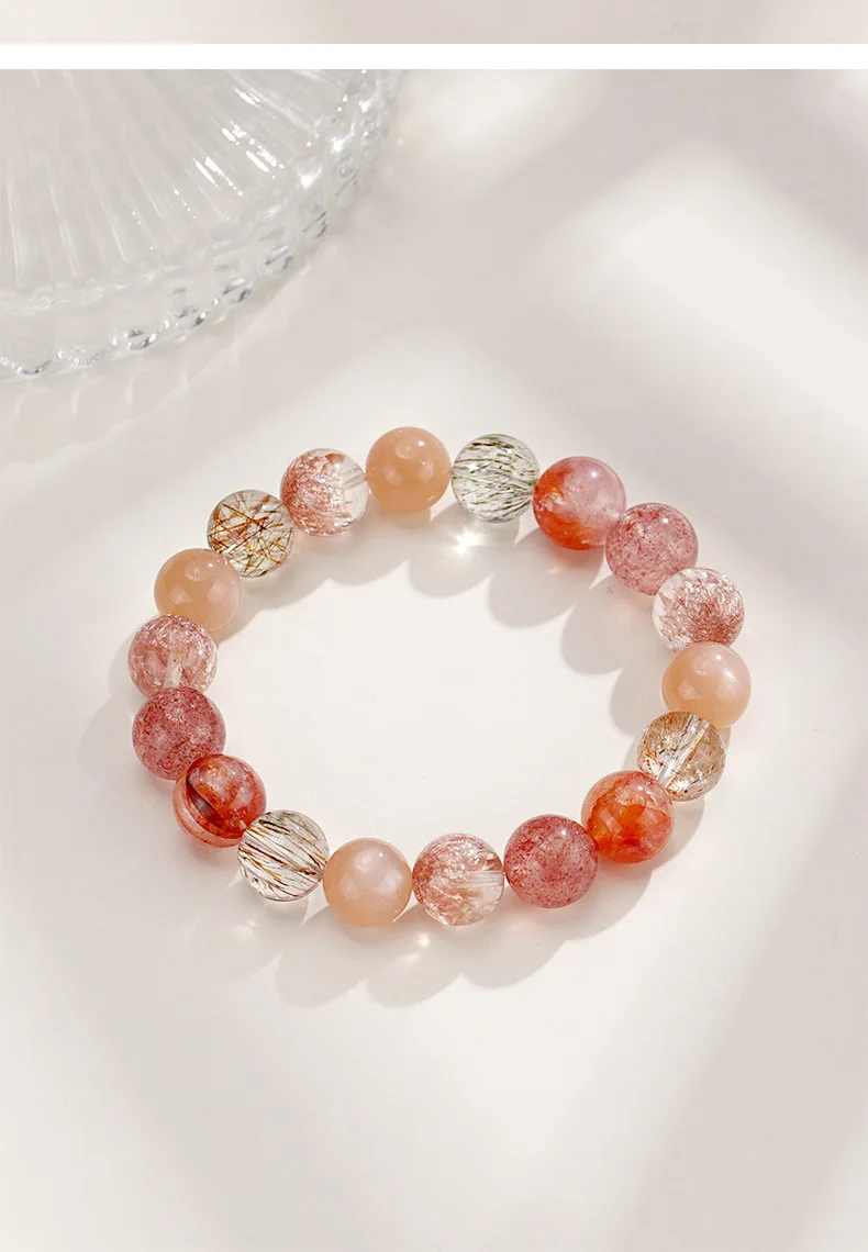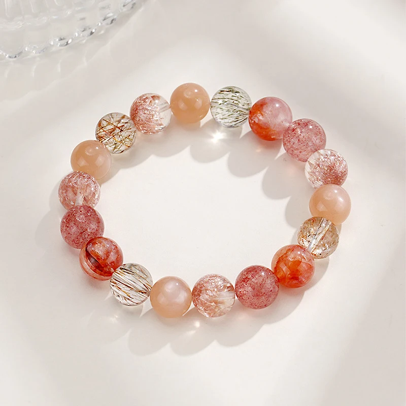 Ruifan Luxury Multicolor 8mm 10mm Natural Rutilated Quartz Crystal Beads Strand Beaded Women Bracelets Bangle Fine Jewelry 1154