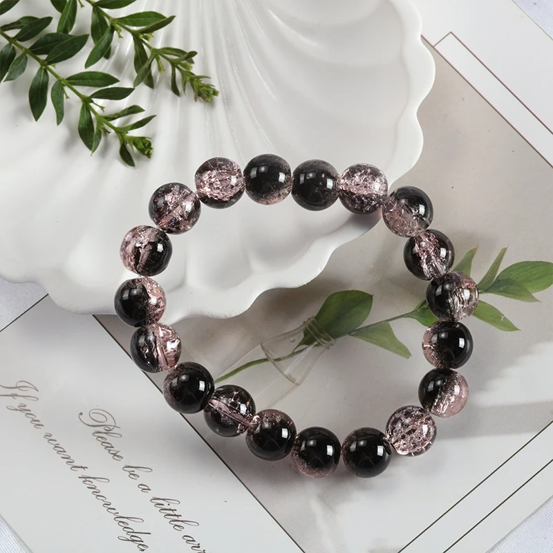 Shiny Transparent Crystal Round Beaded Bracelet for Women Vintage Pink Glass Chain on the Hand Jewelry Girls Gifts